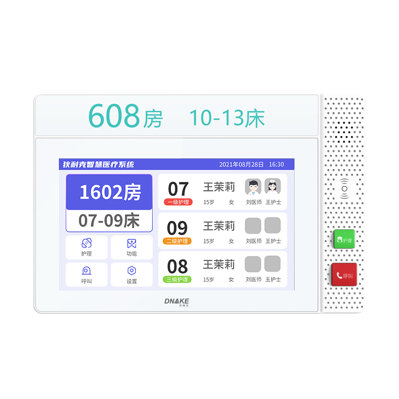 創(chuàng)新設置在病房門口的終端設備,主要用于顯示病房相關信息,內(nèi)置簡易醫(yī)護工作站,支持病房床位一覽、患者動態(tài)跟蹤、呼叫對講、增援求救等多種呼叫類型,信息齊全,及時響應醫(yī)護需求,實現(xiàn)智能化醫(yī)護管理。
