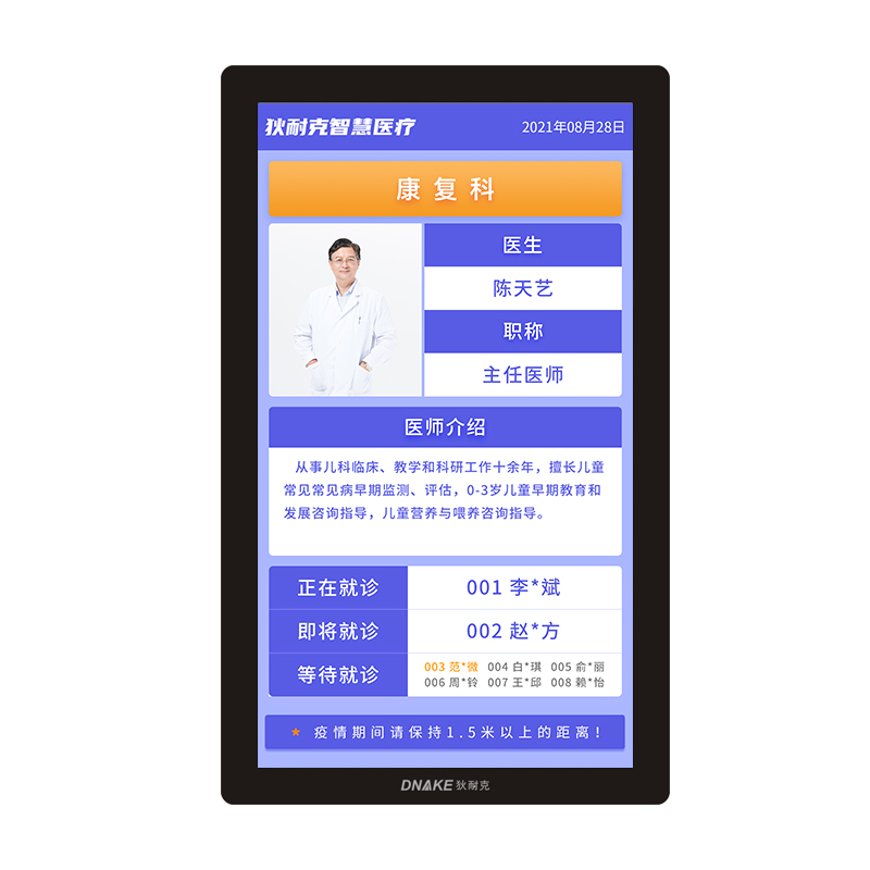 1)可顯示診室醫(yī)生姓名、職稱、照片以及診室號、當(dāng)前呼叫病人姓名與號碼、當(dāng)前等待就診病人姓名與號碼;